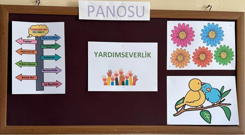 ÇEDES (ÇEVREME DUYARLIYIM DEĞERLERİME SAHİP ÇIKIYORUM) Projesi Kapsamında Aralık Ayı Değeri YARDIMSEVERLİK VE MERHAMET Adlı Pano Çalışmamız ve Yardım Kumbaramız.